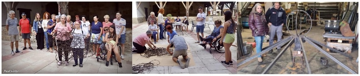 "Aterki Inklusiboa" es una obra de hierro y mimbre, concebida con la técnica nido de mimbre, la cual fomenta proyectos colaborativos que refuerzan el vínculo entre las personas participantes y que nos acerca un poco más al derecho esencial de una participación cultural activa, independientemente de nuestras condiciones físicas o cognitivas, habilidades manuales o experiencias. Una escultura creada con hierro y mimbre, con una altura de 3 metros y medio y ancho de 2 metros.